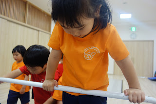 年中さんは跳び箱が上手になってきたねっ❗️❗️基礎体力がついてきたので、技も少しずつレベルアップしています✨壁倒立も体に力が入って、とてもカッコイイ壁倒立です😄👍